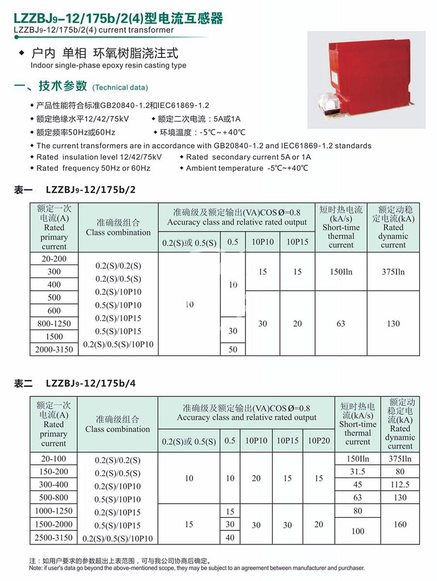 LZZBJ9-12/175b/2(4)型電流互感器