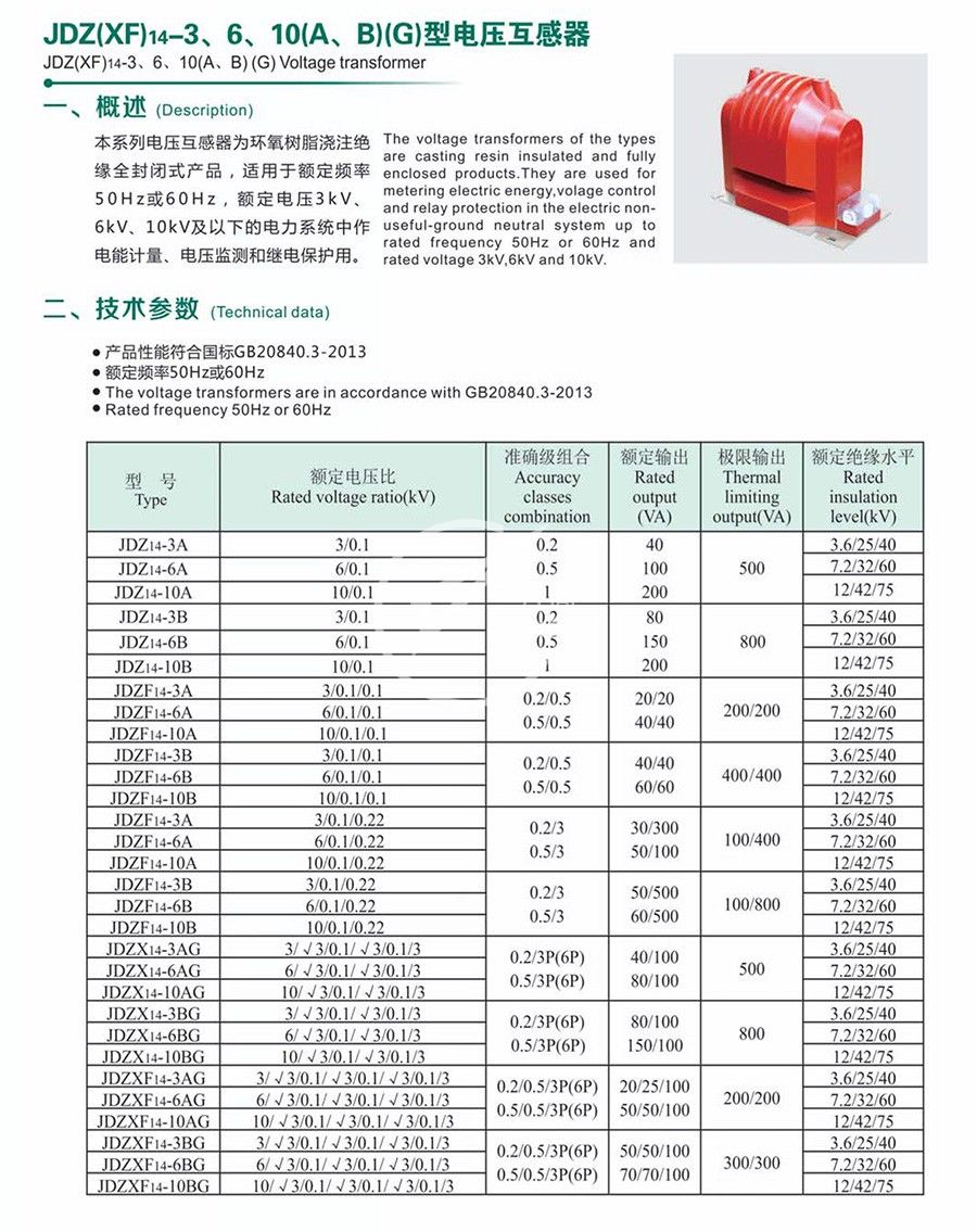 產(chǎn)品型號(hào):JDZ(XF)14-3、6、10(A、B)(G)